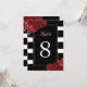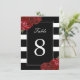 Nombres de table à rayures noires et blanches avec roses rouges - Créé par Colourful Designs Inc. Copyright 2013-2016. Tous les textes peuvent être modifiés.