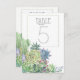 Des polices uniques, des succulentes aquarelles colorées et des fonds scintillants dans un vert printanier doux sont les points forts de ces produits de mariage à assortir. Cette belle carte de numéro de table a des bordures de feuillage dans les coins sur fond blanc avec un modèle fourni pour modifier les nombres. Le produit est reflété au verso. Recherchez ID515 pour voir tous les produits correspondants dans cet ensemble.
