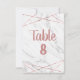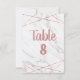 Nombres de table de mariage élégants et modernes avec design géométrique de lignes en or rose sur fond de marbre blanc avec polices à lettres manuscrites tendance ! Carte de disposition des sièges. ~ Consultez ma boutique pour voir l'ensemble de la collection de mariage avec ce design !