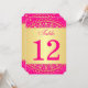 Vous DEVEZ changer le numéro "12" par chaque numéro dont vous avez besoin, l'ajouter à votre panier et répéter ce processus jusqu'à ce que vous ayez toutes les cartes numétées individuellement dont vous avez besoin dans votre panier. Cette carte de numéro de table recto-verso en rose chaud exotique et or présente un grand motif de médaillon à cercle doré central avec des cœurs ornés et des détails en forme d'étoiles et de points dorés qui se superposent à un fond fuchsia avec une autre couche de fines volutes et de motifs en lavande violet brillant. ****VEUILLEZ NOTER que aucun des éléments de cette invitation n'est en relief ou en gaufrage. Tout est imprimé à plat. Cette carte de numéro de table serait parfaite pour un mariage ou une cérémonie d'engagement indien, hindou ou musulman au printemps, en été, en automne ou en