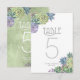 Polices uniques, succulentes colorées à l'aquarelle et fonds scintillants dans un vert printanier doux sont les points forts de ces produits de mariage à assortir. Cette jolie carte de numéro de table comporte des bordures de coins de feuillage sur fond blanc avec un modèle fourni pour modifier les numéros, les noms des mariés et la date du mariage. Un motif brillant et texturé, dans des tons clairs et foncés de vert printanier, ajoute un fond contrasté au verso. Recherchez l'ID515 pour voir tous les produits correspondants de cet ensemble.