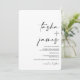Une invitation de mariage moderne, chic et élégante avec des noms personnalisés avec une calligraphie manuscrite en noir et blanc. Cliquez sur le bouton personnaliser pour choisir parmi différents noms, si vous ne trouvez pas votre nom, contactez-moi simplement via le bouton conversation avant d'acheter pour la personnalisation. Tous les textes, noms et couleurs arrière - plans sont personnalisables. Une invitation simple et minimaliste.