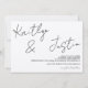 Un faire-part de mariage de paysage moderne, chic et élégant avec des noms personnalisés avec une calligraphie manuscrite en noir et blanc. Tous les textes, noms et couleurs arrière - plans sont personnalisables. Une invitation simple et minimaliste.