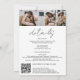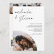 Une invitation de mariage moderne, chic et élégante avec arc, des noms de script avec une calligraphie manuscrite en noir sur blanc avec une photo voûtée et 3 autres photos à l'arrière. Un tout moderne en un seul faire-part de mariage avec rsvp, détails, hébergement et code qr. Tous les textes, noms et couleurs arrière - plans sont personnalisables. Une invitation simple et minimaliste.