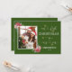 Design de luxe avec moderne et unique "nos premiers noël comme mme et m." calligraphie, arrangement de Noël aquarelle (baies sèches, mistletoe, boules de Noël", faux flocons d'or, votre photo sur un arrière - plan vert. Utilisez l'outil Personnaliser pour ajouter vos informations et votre photo. Voir plus sur Sparkling Christmas Collection.