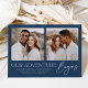 Partagez les nouvelles de votre fiançailles avec ces annonces de fiançailles photo modernes! Le faire-part présente deux de vos photos de fiançailles carrés préférées avec l'expression "Notre aventure commence" en lettres blanches tendance sur un arrière - plan de la marine. Personnalisez l'avant du faire-part en ajoutant vos noms et des détails supplémentaires. Le dos de la faire-part est orné d'un joli motif géométrique.