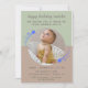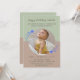 Notre Étoile De Tir Tourne Une Invitation Anniversaire. Célébrez le premier anniversaire de votre petit avec cette invitation charmante et neutre pour les hommes et les femmes. Décoré dans un style vert et beige, cet invitation minimaliste et moderne est orné d'élégantes calligraphies de scénario. La photo circulaire de bébé au centre est encadrée d'étoiles tournantes fantaisistes, créant une touche simple mais magique. Parfait pour marquer ce jalon spécial dans le style. Customisez avec vos propres détails.