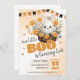 Invitations amis et la famille à une fête éffrayante-mignonne avec cette invitation d'anniversaire fantôme "Notre petit Boo tourne deux". Doté d'un adorable fantôme entouré de fleurs oranges joyeuses et d'une bannière festive, ce design sur le thème de l'Halloween est parfait pour une fête d'automne. Personnalisez facilement avec vos détails de fête pour un invitation amusant et mémorable.
