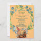 "Notre petit citrouille tourne UN" 1er anniversaire de fête d'invitation pour vos invités. Wouah-les avec la luxuriante couronne de verdure et la vibrante citrouille de chute orange. La décoration est faite de feuilles d'automne, d'une couronne circulaire de verdure et d'un citrouille orange pour célébrer les couleurs de l'automne. L'illustration utilise un script et une typographie modernes qui peuvent être facilement customisés. L'envers a une conception correspondante.