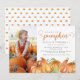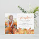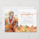 "Appel à tous les anniversaires d'octobre ! Préparez-vous à célébrer avec nos invitations de fête sur le thème de la citrouille charmantes. Ajoutez votre photo préférée et des détails personnalisés pour un toucher vraiment spécial. Avec des citrouilles aquarelles et un modèle moderne, ces invitations sont sûres de se démarquer et de donner le ton pour une fête d'anniversaire effrayante."