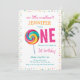 Ces invitations à fêtes d'anniversaire mignonnes comportent un bonbon de sucrerie coloré à l'aquarelle avec une bordure d'arrosage décorative. Personnalisez les invitations de fête d'anniversaire en ajoutant le nom de votre enfant, son âge et les détails de la fête.