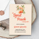 Notre Petite Pêche Douce Tourne Un Anniversaire. Thème de pêche rustique sans sexe Invitation anniversaire avec illustration d'un fruit de pêche sur une branche d'arbre avec des fleurs. Parfait pour la douche d'une fille. Prêt à être personnalisé par vous !