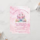 Notre Princesse Princesse Tournera Une Invitation Anniversaire. Joignez-vous à nous pour célébrer une étape magique alors que notre petite princesse en fait un ! Cette adorable invitation présente un arrière - plan rose et rêveur, avec un charmant château aux tons vifs de rose, bleu, jaune et violet. La police de police de l'enfant mignon en rose vif ajoute une touche ludique, ce qui en fait l'invitation parfaite pour annoncer la journée magique de votre petit. Préparez-vous à une fête royale remplie de plaisir, de rire et de joie!