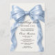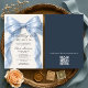 Élégante invitation de mariage Something Blue Before I Do avec un design de nœud délicat et un code QR moderne pour un RSVP facile ou un accès au registre. Parfait pour célébrer la future mariée avec un style intemporel et féminin et une option de réponse numérique pratique. Idéal pour les douches de mariage et les célébrations prénuptiales. Texte et destination QR modifiables. Disposition prête à imprimer.