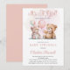 Une paire de nounours en peluche mignons tenant des ballons "C'est une fille et nous pouvons à peine attendre !" Design Baby Sprinkle.