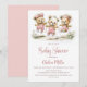 Célébrez l'arrivée imminente de votre petit paquet de joie en invitant vos amis et vos proches à votre fête prénatale avec cette invitation représentant trois ours en peluche adorables portant une salopette à pois roses jouant à la corde à sauter. Le texte personnalisable vous permet d'ajouter sans effort votre nom, la date et l'heure de la célébration, ainsi que les informations de RSVP. Une variété de types de papier et de styles de coins sont disponibles pour vos invitations uniques, ainsi que la possibilité de télécharger si vous préférez un format numérique.
