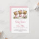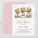 Célébrez l'arrivée imminente de votre petit paquet de joie en invitant vos amis et vos proches à votre fête prénatale avec cette invitation représentant trois ours en peluche adorables portant une salopette rose et jouant à la corde à sauter. Le texte personnalisable vous permet d'ajouter sans effort votre nom, la date et l'heure de la célébration, ainsi que les informations de RSVP. Une variété de types de papier et de styles de coins sont disponibles pour vos invitations uniques, ainsi que la possibilité de les télécharger si vous préférez un format numérique.