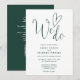 Cette invitation de mariage minimaliste et élégante de couleur vert émeraude peut être personnalisée avec vos informations dans une typographie chic avec les détails de votre site web de mariage et votre code QR au verso. Conçu par Thisisnotme©