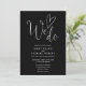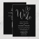 Cette invitation de mariage élégante et minimaliste en noir et blanc avec écriture calligraphiée peut être personnalisée avec vos informations en typographie chic avec les détails de votre site web de mariage et votre QR code au verso. Conçue par Thisisnotme©
