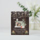 Création de carte unique avec un sapin de Noël, une cheminée, de vieilles lampes avec bougie, verdure hivernale, guirlandes lumineuses sur un fond en bois de grange ancien. Utilisez l'outil Personnaliser pour ajouter vos informations. Voir également ma collection Nous avons déménagé.