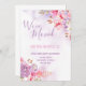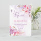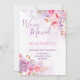 Faire-part mobile avec de belles fleurs d'aquarelle dans des tons doux de rose et violet et typographie moderne. Vous pouvez personnaliser avec votre propre message sur le dos.