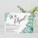 En utilisant une police de script moderne pour rendre un graphique représentant les mots "We Eloped!", cette jolie carte est idéale pour célébrer votre mariage après le fait. Le design est accentué par des grappes de succulents bleus, verts et violets. Votre propre texte est facilement ajouté pour customiser ce modèle aussi peu ou pas que vous le souhaitez. Utilisez les champs fournis pour simplement saisir vos données personnelles, puis cliquez pour customiser plus loin si vous souhaitez repositionner un calque déverrouillé. Toutes les couches ont été ajoutées séparément et ont été déverrouillées afin d'offrir une flexibilité de conception maximale. N'hésitez pas à me contacter pour des demandes spéciales ou pour obtenir de l'aide sur la personnalisation. // 81// Conçu par Melody Watson pour Paper Muserie.