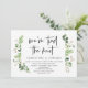 Moderne écriture noire, Thème de verdure de jardin d'été, carte d'invitation d'élopement de mariage (Nous avons fait le noeud). C'est parfait pour votre réception d'élopement de mariage / fête de célébration de mariage. Ajoutez vos détails dans la même police / lettrage noir.