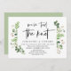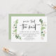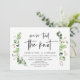 Carte d'invitation d'élopement de mariage à thème de verdure de jardin d'été, écriture noire moderne (Nous avons fait le noeud). Elle est parfaite pour votre réception d'élopement de mariage / fête de célébration de mariage. Ajoutez vos détails dans la même police / lettrage noir.