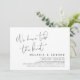 Ceci est la carte d'invitation de la fête d'élopement de mariage, avec un design minimaliste / écriture noire minimaliste (Nous avons noué le noeud).