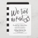 Après le grand jour et l'échange des anneaux, invitez vos invités d'honneur à une célébration. Cette invitation présente les mots "Nous avons noué le nœud" en lettres calligraphiées élégantes. Sur le côté, se trouvent une paire d'alliances. Sous ce graphique unique, un espace est prévu pour vos propres mots et informations concernant votre événement post-nuptial.