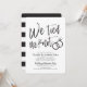 Après le grand jour et l'échange des anneaux, invitez vos invités les plus honorés à une célébration. Cette invitation présente les mots "Nous avons noué le nœud" en lettres calligraphiées élégantes. Sur le côté, se trouvent une paire d'alliances. Sous ce graphique unique se trouve un espace pour vos propres mots et informations concernant votre événement post-nuptial.