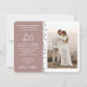 Nous nous sommes mariés Parties scintillant Coeur Photo Rose Or et Blanc Mariage Faire-part présente votre photo personnalisée et romantique coeur d'amour parties scintillant argent sur un rose or et blanc arrière - plan avec votre mariage faire-part informations à gauche. Conçu par © Evco Studio www.zazzle.com/store/evcostudio