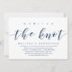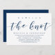 Thème bleu marine classe moderne, carte d'invitation de célébration de mariage en fuite (Nous avons noué le nœud). C'est parfait pour votre célébration décontractée au bord du lac.