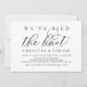 Thème calligraphique minimaliste romantique moderne, carte d'invitation de fête d'évasion amoureuse (Nous avons noué le nœud). C'est parfait pour votre annonce et célébration de fête d'évasion amoureuse, après votre meilleur jour. Ajoutez vos détails dans une police / lettrage noir assorti.