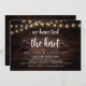 Nous avons noué le nœud, Carte d'annonce / invitation de mariage en fuite, dans un design de bois de ferme rustique avec guirlandes lumineuses. C'est parfait pour votre réception de mariage et votre fête de célébration après le mariage. Ajoutez vos détails dans la même police / lettrage.