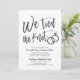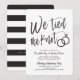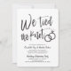 Après le grand jour et l'échange des anneaux, invitez vos invités d'honneur à une célébration. Cette invitation présente les mots "Nous avons noué nos vies" en lettres calligraphiées fantaisistes. Sur le côté, se trouvent une paire d'alliances. Sous ce graphique unique se trouve un espace pour vos propres mots et informations concernant votre événement post-nuptial.