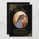Cette belle invitation de réception de mariage ou de soirée après-mariage présente un titre élégant en écriture cursive indiquant "Nous l'avons fait !". Elle a un design simple mais élégant avec des lettres en écriture cursive dorée sur un fond noir classique, et votre photo dans un cadre ovale entouré de volutes et de boucles dorées en faux feuilletis orné. Parfait pour les mariages en petit comité ou les célébrations qui ont lieu après une cérémonie privée. Une excellente façon d'inviter votre famille et vos amis à célébrer votre amour.