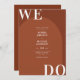 Donnez le ton pour votre grand jour avec cette Invitation Mariage de automne We Do Boho Terracotta Arch, parfait pour une fête de mariage bohème ou d'automne. Avec ses tons chauds de terre cuite et son architecture élégante en arc de cercle, cette invitation est idéale pour les couples qui planifient un mariage boho-chic, des nuptiaux d'automne rustiques ou une cérémonie moderne minimaliste. Personnalisez-le pour correspondre à votre thème mariage unique.