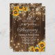 Une élégante invitation anniversaire de mariage avec lumières à cordes, tournesols et calligraphie élégante que vous pouvez customiser avec vos détails.
