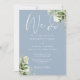 Cette élégante invitation de mariage florale botanique bleu poussiéreux peut être personnalisée avec vos informations en typographie chic avec vos initiales monogramme au verso. Conçue par Thisisnotme©
