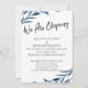 Invitez vos invités à votre célébration de mariage à l'aide de ces cartes simples et décorées. J'ai utilisé une police manuscrite décontractée et moderne pour créer une superposition de typographie graphique indiquant "Nous nous enfuyons". Le haut et le bas sont accentués de brindilles de feuilles aquarelles bleues. Remplissez les espaces vides du modèle avec vos informations pour personnaliser le design. Toutes les couches ont été laissées déverrouillées afin que vous puissiez cliquer pour personnaliser davantage et repositionner le texte ou même changer la taille ou la police de soutien.