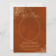 Cette invitation à une réception de mariage ou à une soirée après-mariage présente un titre élégant en écriture cursive indiquant "Nous l'avons fait !". Elle a un design simple mais élégant avec des lettres en écriture cursive dorée sur un fond de couleur orange rouille marbré ou ambre brûlé, et votre photo dans un cadre ovale entouré de fronces en faux papier métallisé. Parfait pour les mariages en petit comité ou les célébrations qui ont lieu après une cérémonie privée. Une excellente façon d'inviter votre famille et vos amis à célébrer votre amour.