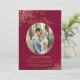 Cette belle invitation de réception de mariage ou de soirée après-mariage présente un titre élégant en écriture cursive indiquant "Nous l'avons fait !". Elle a un design simple mais élégant avec des lettres en écriture dorée fantaisie sur un fond de couleur bordeaux, marron ou rouge vin, et votre photo dans un cadre ovale entouré de fronces en faux lace doré. Parfait pour les mariages en fuite ou les célébrations qui ont lieu après une cérémonie privée. Une excellente façon d'inviter votre famille et vos amis à célébrer votre amour.