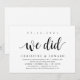 Carte d'invitation thème Moderne Rustique, écriture noire (avec titre de carte : nous l'avons fait). Elle est parfaite pour votre réception de mariage après évasion / fête de célébration de mariage. Ajoutez vos détails dans la même police / lettrage noir.