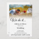 Nous le faisons - un couple en train de s'embrasser sur une prairie. Carte mariage sur laquelle l'image, l'occasion, les noms, l'emplacement et la date peuvent être customisés dans le modèle.