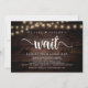 Nous n'avons pas pu attendre, Carte d'annonce / invitation de mariage en fuite, dans un design de bois de ferme rustique avec des guirlandes lumineuses. C'est parfait pour votre réception de mariage et votre fête de célébration post-mariage. Ajoutez vos détails dans la même police / lettrage.