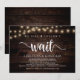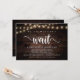 Nous n'avons pas pu attendre, Carte d'annonce de mariage intime / faire-part de mariage, sur fond de Bois de ferme Rustique, avec guirlande lumineuse. C'est parfait pour votre réception de mariage et fête de célébration après le mariage. Ajoutez vos détails avec la même police / lettrage.