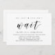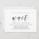 Carte d'invitation de mariage en fuite sur le thème du script noir moderne (Nous n'avons pas pu attendre). Elle est parfaite pour votre réception de mariage en fuite / fête de célébration post-mariage. Ajoutez vos détails dans une police / lettrage noir assorti.
