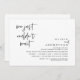 Carte d'invitation de mariage moderne avec écriture noire (Nous n'avons pas pu attendre). Elle est parfaite pour votre réception de mariage en fuite / fête de célébration après le mariage. Ajoutez vos détails avec une police / lettrage noir assorti.