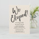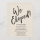 Invitez vos invités à votre célébration de mariage à l'aide de ces cartes d'invitation simples. J'ai utilisé une police manuscrite décontractée et moderne pour créer une superposition de typographie graphique indiquant "Nous nous sommes enfuis !". Remplissez les espaces vides du modèle avec vos informations pour personnaliser le design. Toutes les couches ont été laissées déverrouillées afin que vous puissiez également cliquer pour personnaliser davantage et repositionner le texte ou même changer la taille ou les polices. Changez le fond uni en n'importe quelle couleur dont vous avez besoin. // 90 //
